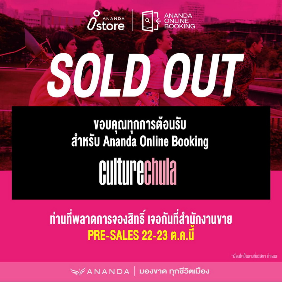 โครงการคัลเจอร์ จุฬา SOLD OUT จำนวน 62 ยูนิต ใช้เวลาเพียง 1 ชั่วโมง ทำให้สามารถสร้างยอดขายได้มูลค่ารวม 594 ล้านบาท ซึ่งใครที่พลาดการจองสิทธิ์รอบนี้ สามารถพบกันในงาน Pre-sales วันที่ 22-23 ต.ค. 65 ที่สำนักงานขาย