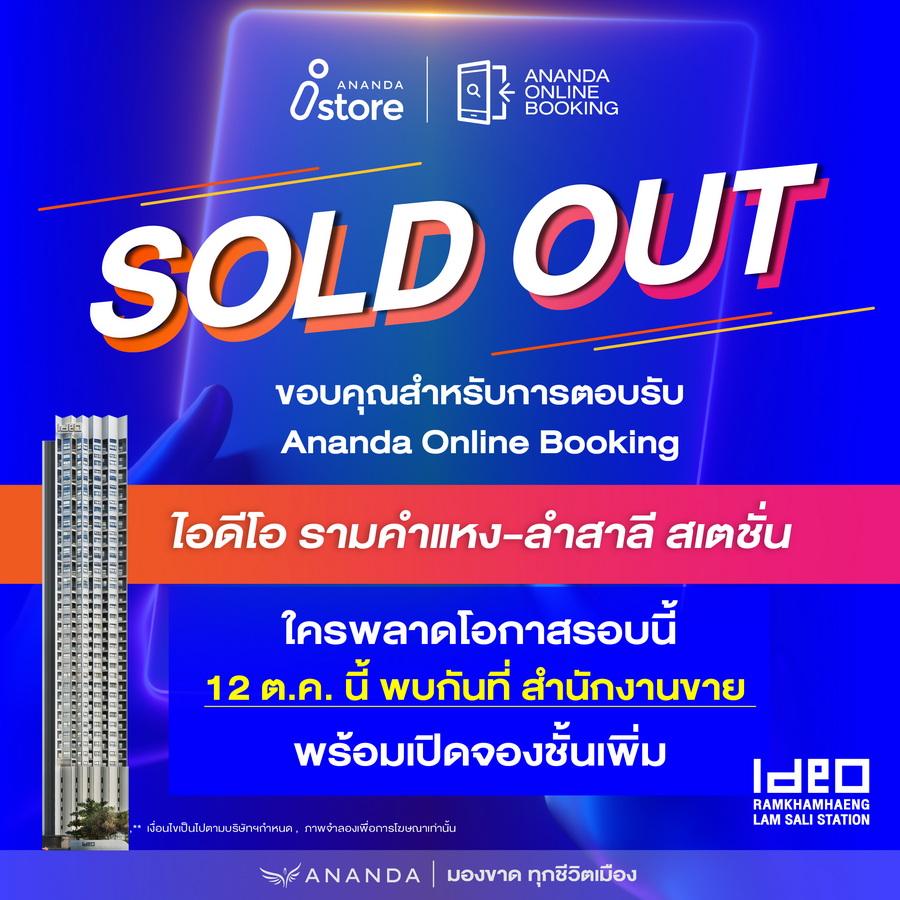 บริษัท อนันดา ดีเวลลอปเม้นท์ จำกัด (มหาชน) ผู้นำตลาดคอนโดมิเนียมติดรถไฟฟ้าและผู้นำนวัตกรรมเพื่อการอยู่อาศัยที่ตอบรับไลฟ์สไตล์คนเมืองได้อย่างลงตัวที่สุด โชว์ศักยภาพสะเทือนวงการอสังหาฯ ประกาศ BIG MOVE กับการเปิดจองสิทธิ์ออนไลน์ผ่าน Ananda Online Booking โดยสามารถ Sold Out! 3 โครงการใหม่ล่าสุด