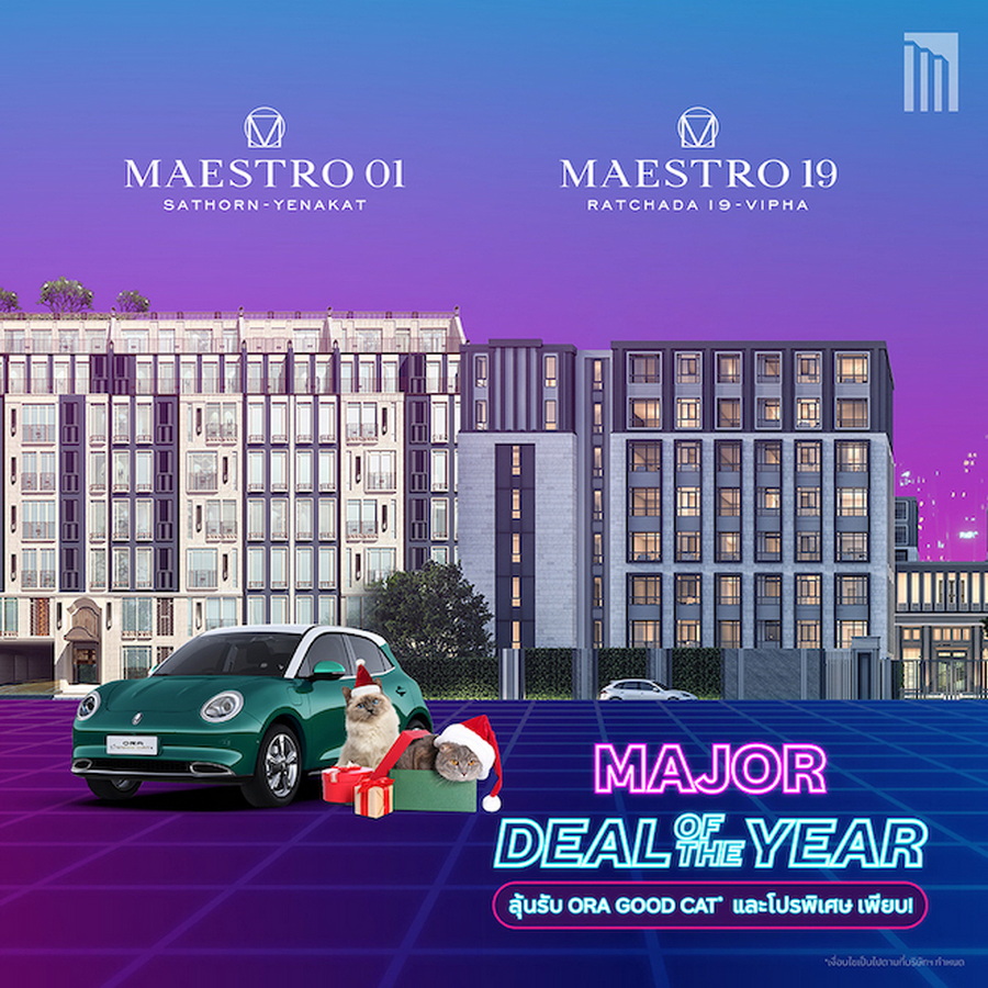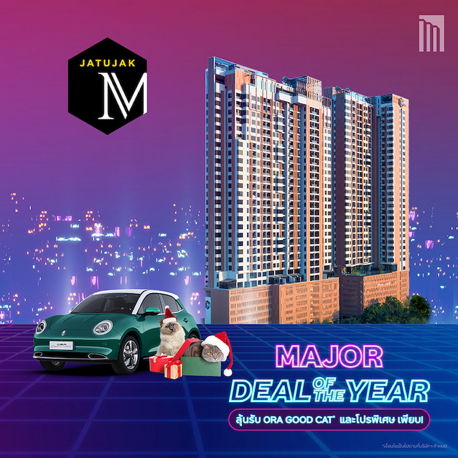 “เมเจอร์ ดีเวลลอปเม้นท์” ยกทัพ 6 คอนโดพร้อมอยู่เลี้ยงสัตว์ได้แบรนด์ดังหลากโครงการ บนทำเลศักยภาพ จัดโปรโมชั่นสุดพิเศษส่งท้ายปี “Major Deal of The Year” พร้อมมอบสิทธิพิเศษแบบ 3 ต่อ ต่อที่ 1 ร่วมลุ้นรับรถยนต์ไฟฟ้า ORA GOOD CAT* และของรางวัลอื่นๆ อีกมากมาย รวมมูลค่ากว่า 1 ล้านบาท* ต่อที่ 2 หากจองและทำสัญญาในปีนี้ รับทันทีสิทธิ์ผ่อนสบายแบบปลอดดอกเบี้ย 0% นานถึง 6 เดือน* ต่อที่ 3 รับของขวัญสำหรับสัตว์เลี้ยงช่วงปีใหม่ เพียงเข้าเยี่ยมชมโครงการ ณ สำนักงานขาย ในราคาเริ่มต้นเพียง 2.89 ล้านบาท*
