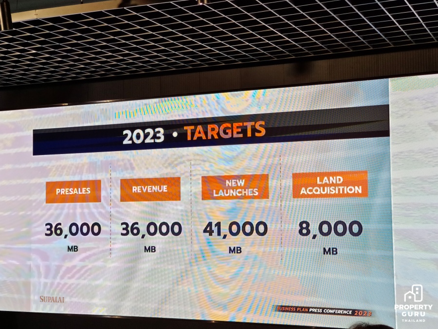 ขณะที่ปี 2566 บริษัทฯ ตั้งเป้าหมายอดขาย 36,000 ล้านบาท และเป้าหมายรายได้ 36,000 ล้านบาท โดยวางแผนเปิดตัวโครงการใหม่ 37 โครงการ แบ่งเป็นโครงการแนวราบ 34 โครงการ มูลค่า 32,700 ล้านบาท และโครงการคอนโดมิเนียม 3 โครงการ มูลค่า 8,300 ล้านบาท คิดเป็นมูลค่ารวม 41,000 ล้านบาท และกำหนดงบประมาณการจัดซื้อที่ดิน 8,000 ล้านบาท ซึ่งในปีนี้บริษัทฯ มุ่งเน้นสู่เป้าหมายที่ยิ่งใหญ่ด้วยความมั่นคง และยั่งยืน เตรียมบุกหนักในโครงการภูมิภาคต่างๆ ในจังหวัดใหม่ๆที่มีทำเลศักยภาพและมีความต้องการที่อยู่อาศัยจำนวนมาก ซึ่งปัจจุบันศุภาลัยพัฒนาโครงการครอบคลุม 28 จังหวัด โดยในปี 2566 เสริมความแข็งแกร่งพัฒนาโครงการใหม่ใน 5 จังหวัดใหม่ ได้แก่ ลำปาง ลำพูน นครปฐม ราชบุรี และจันทบุรี