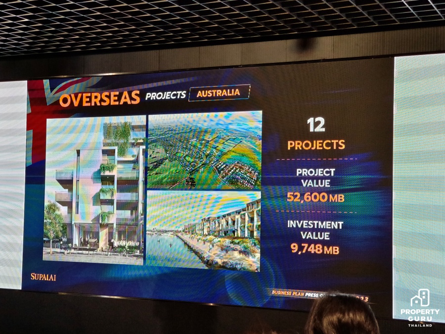 ส่วนของบริษัทฯ มีการขยายการลงทุนเพื่อพัฒนาโครงการอสังหาริมทรัพย์ทั้งในประเทศและต่างประเทศที่ประเทศออสเตรเลีย ได้มีการลงทุนไปแล้ว 12 โครงการ มูลค่าโครงการ 52,600 ล้านบาท ด้วยเม็ดเงินลงทุนรวมของศุภาลัย 9,748 ล้านบาท ซึ่งมีการเติบโตเป็นที่น่าพึงพอใจอย่างมาก