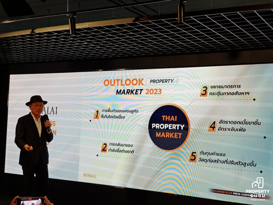 ดร.ประทีป ตั้งมติธรรม ประธานกรรมการบริหาร บริษัท ศุภาลัย จำกัด (มหาชน) เปิดเผยว่า ปี 2565 เศรษฐกิจไทยมีการขยายตัวมากขึ้นจากปี 2564 เนื่องจากมีการผ่อนคลายมาตรการควบคุมการแพร่ระบาดของโควิด-19 ให้นักท่องเที่ยวต่างชาติเข้ามาท่องเที่ยวในไทย ขณะเดียวกันภาพรวมตลาดอสังหาริมทรัพย์ในปี 2565 เริ่มฟื้นตัวและมาตรการกระตุ้นธุรกิจ ด้วยการลดหย่อนค่าธรรมเนียมการโอนกรรมสิทธิ์ และมาตรการผ่อนคลาย LTV (อัตราส่วนการให้สินเชื่อโดยเทียบกับมูลค่าหลักประกัน) ทำให้เกิดการกระตุ้นการตัดสินใจซื้อที่อยู่อาศัยของผู้บริโภค