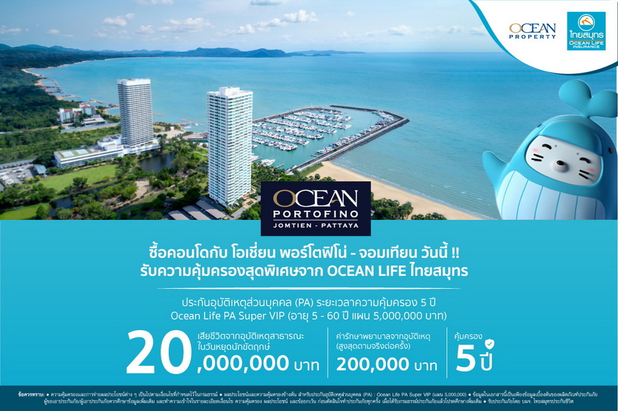 ซื้อคอนโดกับ โอเชี่ยน พอร์โตฟิโน่ วันนี้ ฟรีประกันอุบัติเหตุ 20 ล้านบาท* นาน 5 ปี