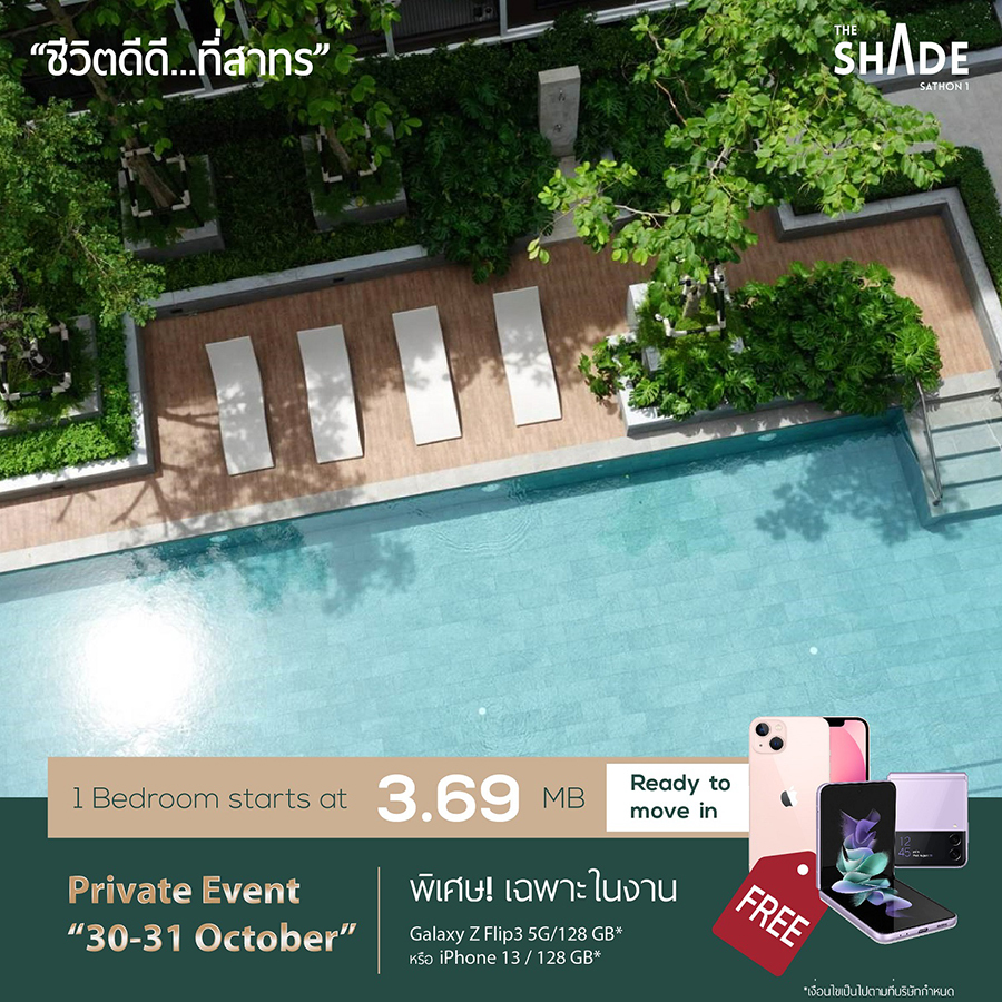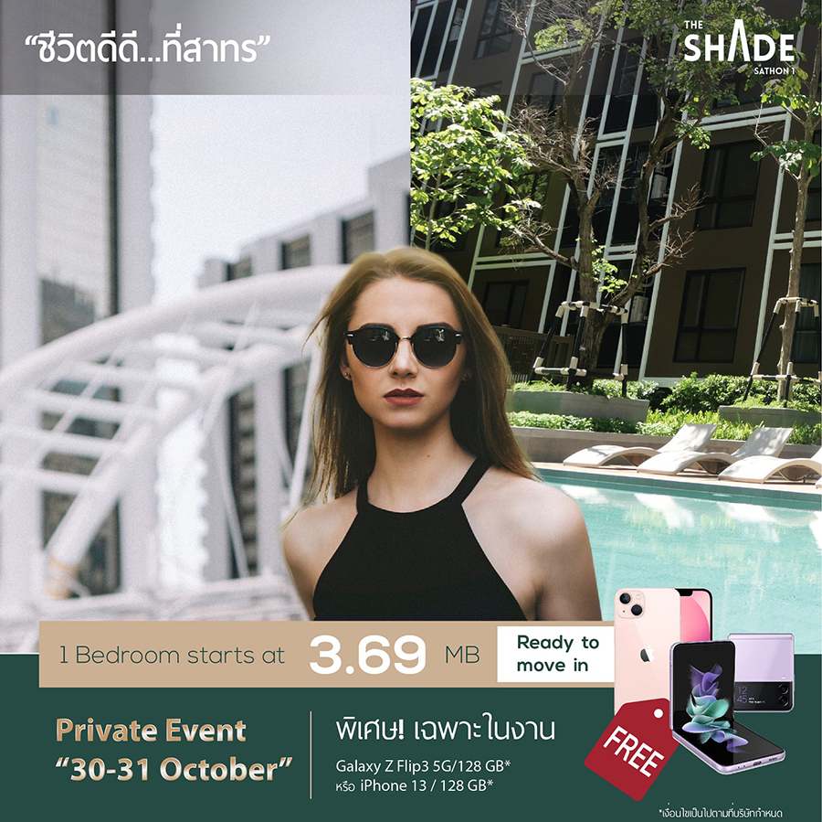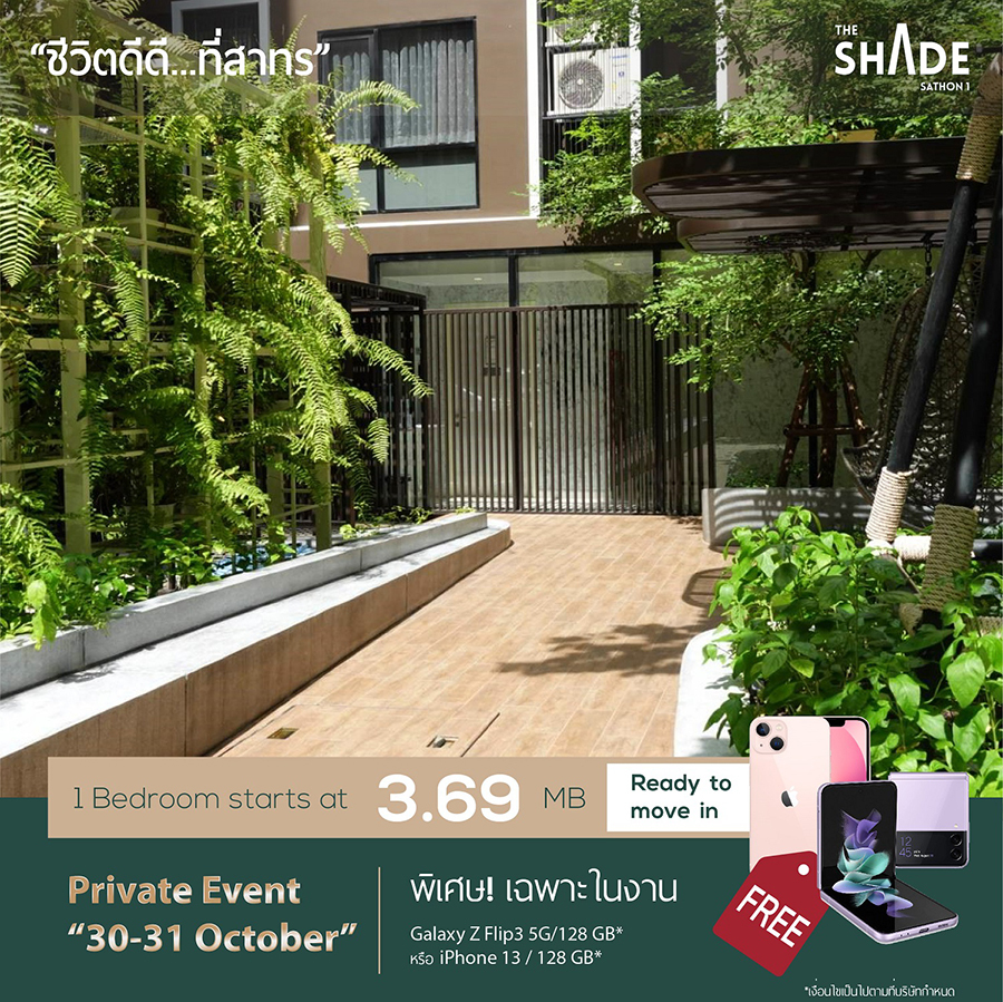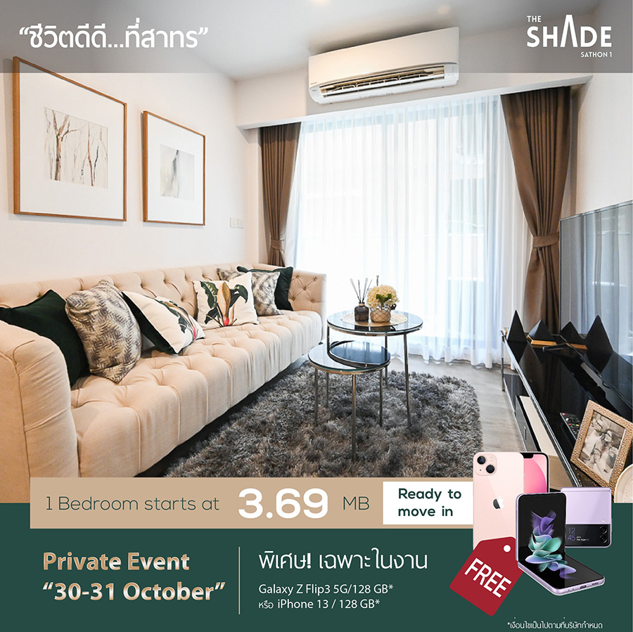 “บริษัทฯ เล็งเห็นถึงโอกาสที่ดี ในบรรยากาศที่ดีนี้ จึงได้กำหนดจัดงานสำหรับผู้ที่สนใจหนึ่งในโครงการคุณภาพพร้อมอยู่ อย่าง “เดอะ เชดด์ สาทร 1” (The SHADE Sathon 1) คอนโดมิเนียมใหม่เสร็จสมบูรณ์พร้อมอยู่บนทำเลศักยภาพใจกลางสาทร เพื่อเป็นการต้อนรับลูกค้าให้กลับมาเยี่ยมชมโครงการฯ ของเราอย่างเต็มรูปแบบ พร้อมทั้งได้สัมผัสชีวิตดีดี...ที่สาทร ที่โครงการของเรามอบให้ พร้อมกันนั้นภายในงานยังได้เตรียมมอบสิทธิพิเศษมากมาย