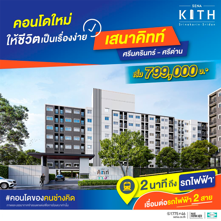 บริษัท เสนาดีเวลลอปเม้นท์ จำกัด (มหาชน) หรือ SENA ผู้พัฒนาคอนโดมิเนียมระดับราคาต่ำล้าน ภายใต้แบรนด์คอนเซ็ปต์ "เสนาคิทท์ (SENA KITH)" คอนโดของคนช่างคิด ... ดีกว่าที่คิด เข้าร่วมแคมเปญ "บ้านล้านหลัง" สอดรับมาตรการรัฐ เตรียมเปิดจอง เสนาคิทท์ ศรีนครินทร์ - ศรีด่าน (Senakith Srinakarin - Sridan) วันที่ 6-7 พ.ย. นี้ พร้อมรับเงื่อนไขสุดพิเศษ กั้นทั้งห้อง เฟอร์นิเจอร์ครบ ราคาเริ่มต้น 799,000 บาท และทำนิติกรรมได้ภายในวันที่ 30 ธันวาคม 2566