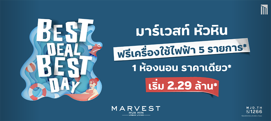 MARVEST Huahin คอนโดพร้อมอยู่ ใจกลางหัวหิน ติดถนนเพรชเกษม ใกล้แหล่ง กินเที่ยว ช้อป