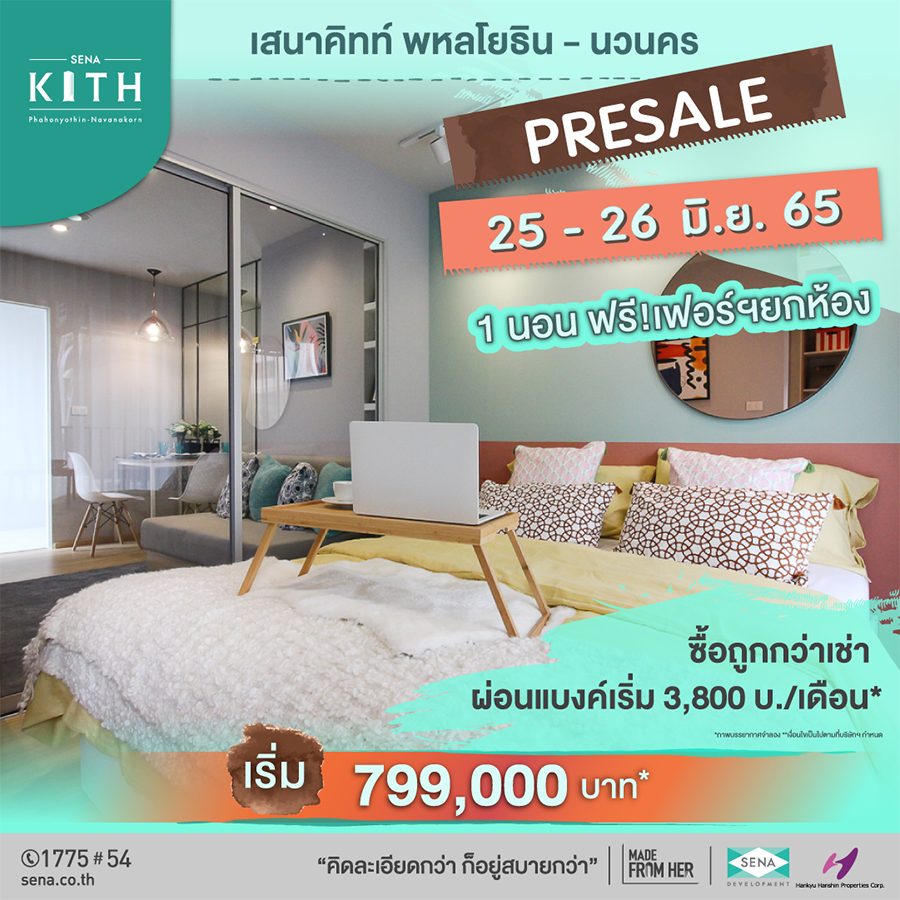 เสนาคิทท์ พหลโยธิน - นวนคร วันที่ 25 - 26 มิ.ย. 65 คอนโดใกล้นิคมนวนคร ส่วนกลางครบ สระว่ายน้ำ ฟิตเนส ลิฟต์ล็อกชั้น ให้คุ้มเกินคาด