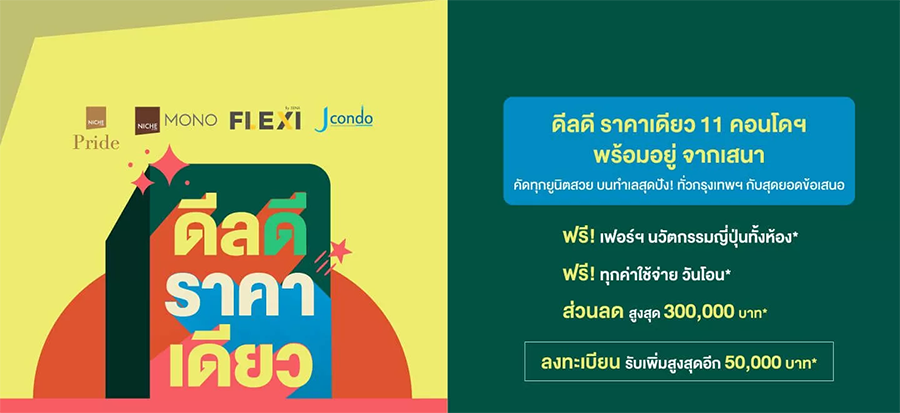 https://bit.ly/3I7fhIw เสนาจัดให้ กับแคมเปญพิเศษ "ดีลดีราคาเดียว" กับ 11 โครงการคอนโดฯ พร้อมอยู่ หลากหลายทำเลสุดปังมาให้เลือก คัดมาเน้นๆ เฟ้นยูนิตสวยๆ มาให้จอง พร้อมรับข้อเสนอสุดพิเศษ เพียงลงทะเบียนตั้งแต่วันนี้ - 30 มิ.ย. 65 รับส่วนลดเพิ่มสูงสุดถึง 50,000 บาท*