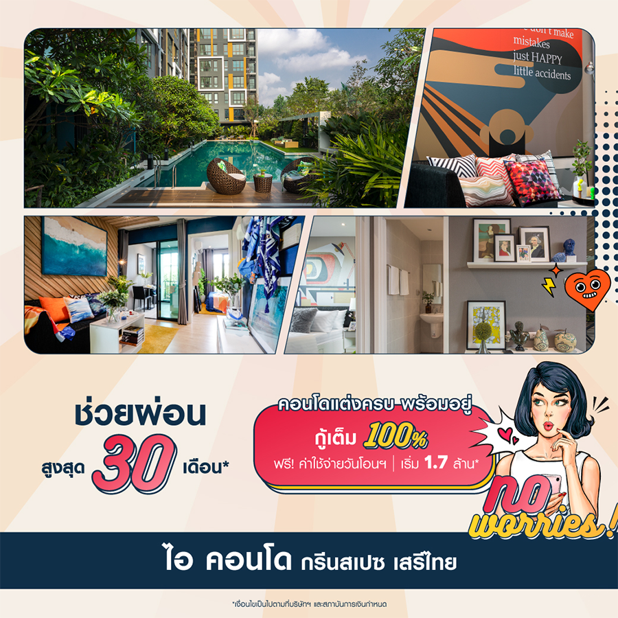 พร็อพเพอร์ตี้ เพอร์เฟค ส่งโปรฯ "No Worries" กับ 3 คอนโดพร้อมอยู่ 3 ทำเล ไอ คอนโด กรีนสเปซ เสรีไทย, ไอคอนโด ศาลายา 2 เดอะ แคมปัส, เดอะ เลค กัลปพฤกษ์-วุฒากาศ เริ่ม 1.7 ล้านบาท* โปรโมชั่นสิ้นสุด 30 มิ.ย. 2565 จองวันนี้ แถมฟรีอีกเพียบ