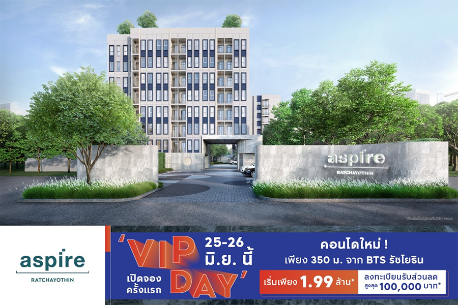Aspire รัชโยธิน คอนโดใหม่ล่าสุดจากเอพี เพียง 350 ม. จาก BTS รัชโยธิน เริ่มเพียง 1.99 ล้าน* เปิดจองครั้งแรก! 25-26 มิ.ย.นี้ "VIP DAY" โปรโมชั่นสุดพิเศษเฉพาะภายในงานเท่านั้น! ลงทะเบียนรับส่วนลดสูงสุด 100,000 บาท* คลิก