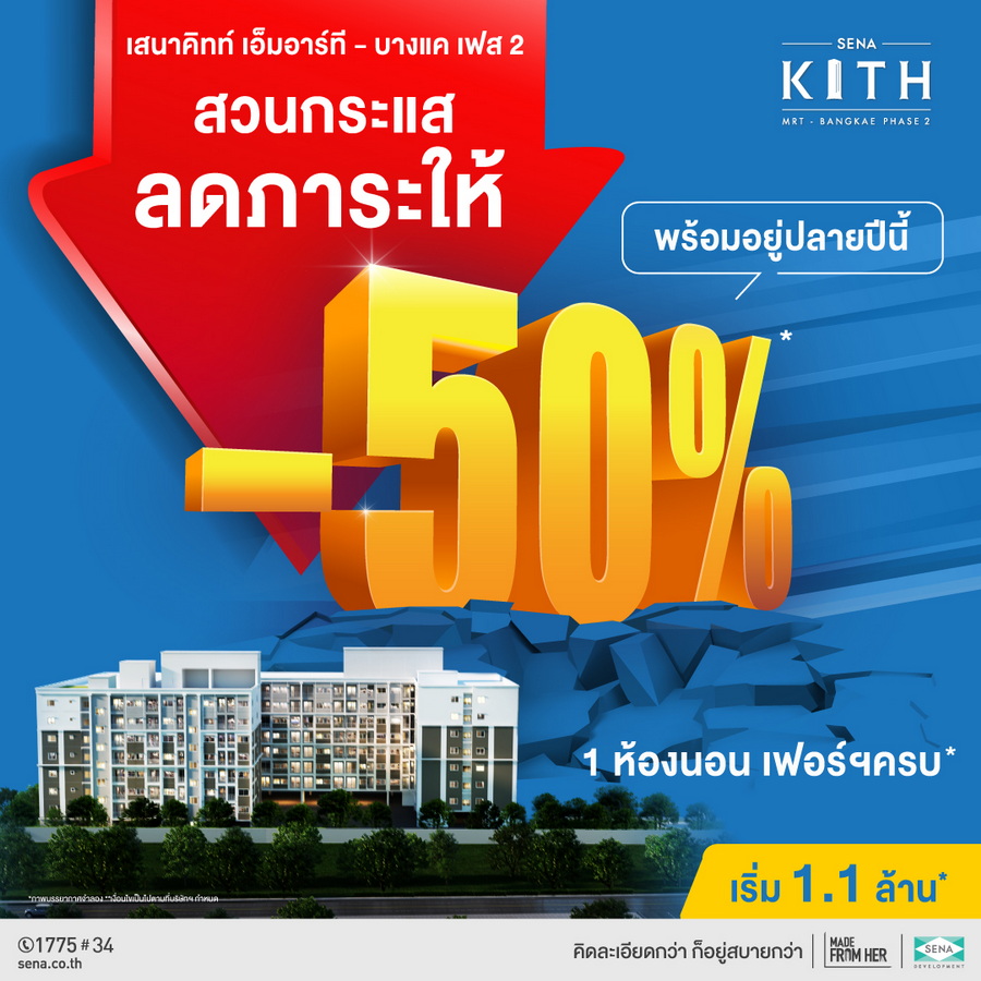 SENA ส่งแคมเปญ "เสนาสวนกระแสลดภาระ 50%" ผ่อนล้านละ 2,000 บ. ลดค่าส่วนกลางนาน 4 ปี