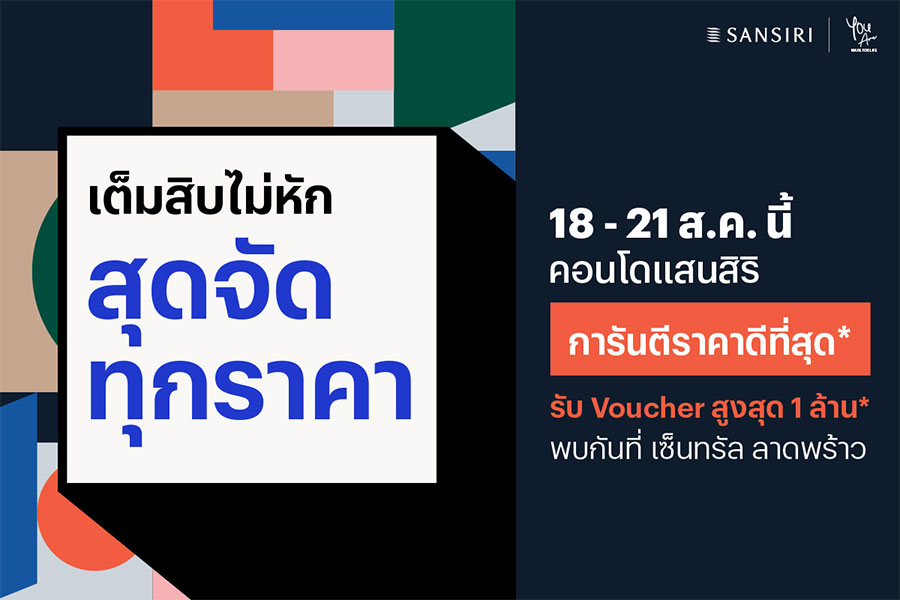 โปรโมชั่น "เต็มสิบไม่หัก สุดจัดทุกราคา" วันที่ 18 – 21 สิงหาคม 2565 นี้ พบคอนโดมิเนียมแสนสิริ 13 โครงการ จากหลากหลายทำเล ที่การันตีราคาดีที่สุด* พร้อมโปรโมชันจัดเต็มมากมาย ที่เซ็นทรัล ลาดพร้าว พลาดแล้วพลาดเลย