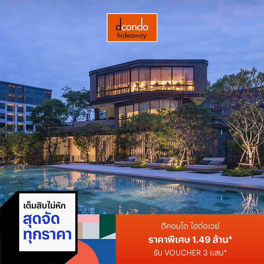 - ดีคอนโด ไฮด์อเวย์ รังสิต : ราคาพิเศษ 1.49 ล้าน* รับ Voucher 300,000 บาท*