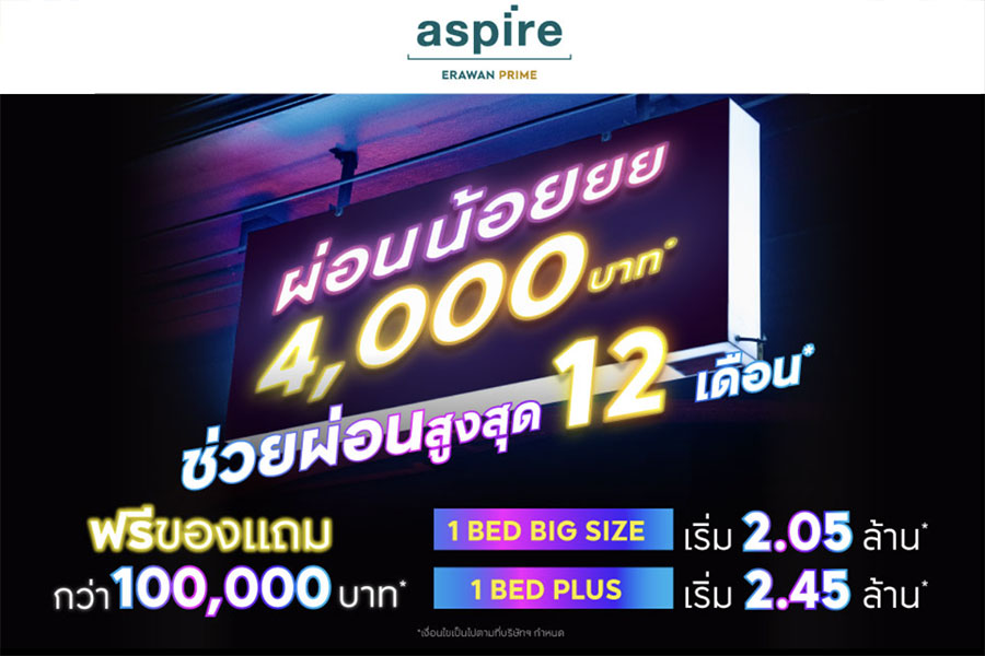 แอสปาย เอราวัณ ไพร์ม (Aspire Erawan Prime) คอนโดใหม่พร้อมอยู่ ติด BTS ช้างเอราวัณ ต่อเดียวถึงเอกมัย อโศก สยาม ไม่ต้องเปลี่ยนสถานี เชื่อมต่อสู่ใจกลางเมือง ส่วนกลาง 30 จุด 3 ชั้น บนพื้นที่กว่า 3 ไร่* ห้องหน้ากว้าง สะดวกสบายด้วย SMART APPLICATION ยกระดับการอยู่อาศัยให้สมาร์ท และปลอดภัย