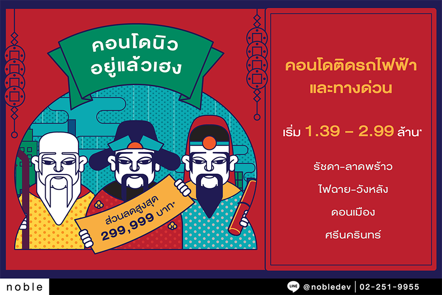 คอนโด NUE อยู่แล้วเฮง! พบกับ 4 คอนโดทำเลทอง ติดรถไฟฟ้า และทางด่วน จากนิว โนเบิล เริ่ม 1.39 – 2.99 ล้าน* เฮงพร้อมกันวันนี้ ที่สำนักงานขาย