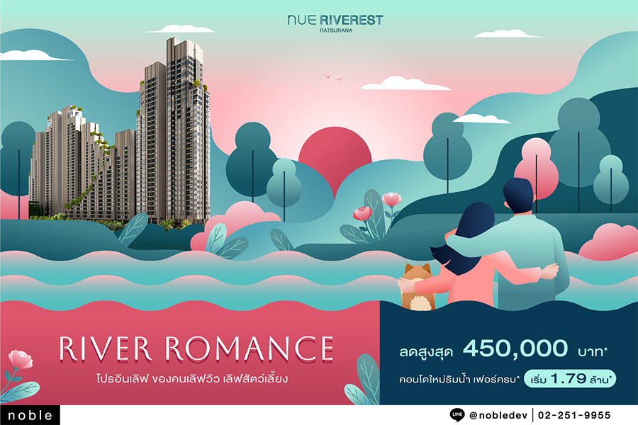 โนเบิลจัดโปรฯ Nue Riverest "River Romance" โปรอินเลิฟของคนเลิฟวิว เลิฟสัตว์เลี้ยง กับยูนิตพิเศษ ราคาสวย ที่ใครๆ เห็นเป็นต้องเลิฟ ห้ามพลาด!! ถึงสิ้นเดือน ก.พ. นี้เท่านั้น