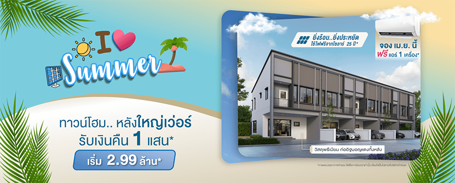 ล่าสุดจัดแคมเปญพิเศษรับหน้าร้อน ภายใต้ชื่อ “I Love Summer” ให้กับลูกค้าที่กำลังมองหาที่อยู่อาศัยได้เลือกซื้อบ้าน,ทาวน์โฮมและคอนโดมิเนียมหลากหลายทำเลและพร้อมเข้าอยู่  ประกอบด้วยโครงการ