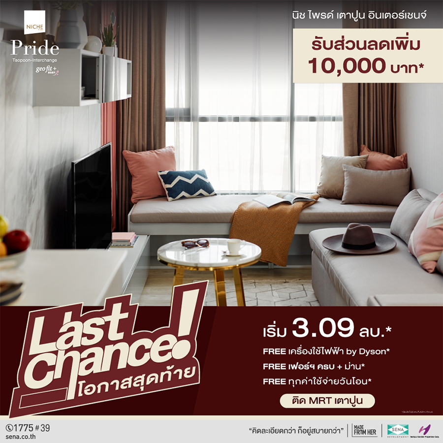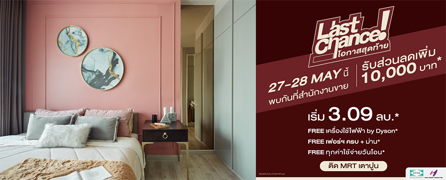 LAST CHANCE โอกาสสุดท้าย 27-28 MAY นี้ พบกันที่สำนักงานขายโครงการ พิเศษ เฉพาะวันงาน รับส่วนลดเพิ่ม 10,000 บ* เป็นเจ้าของวันนี้ ยังไงก็คุ้ม!