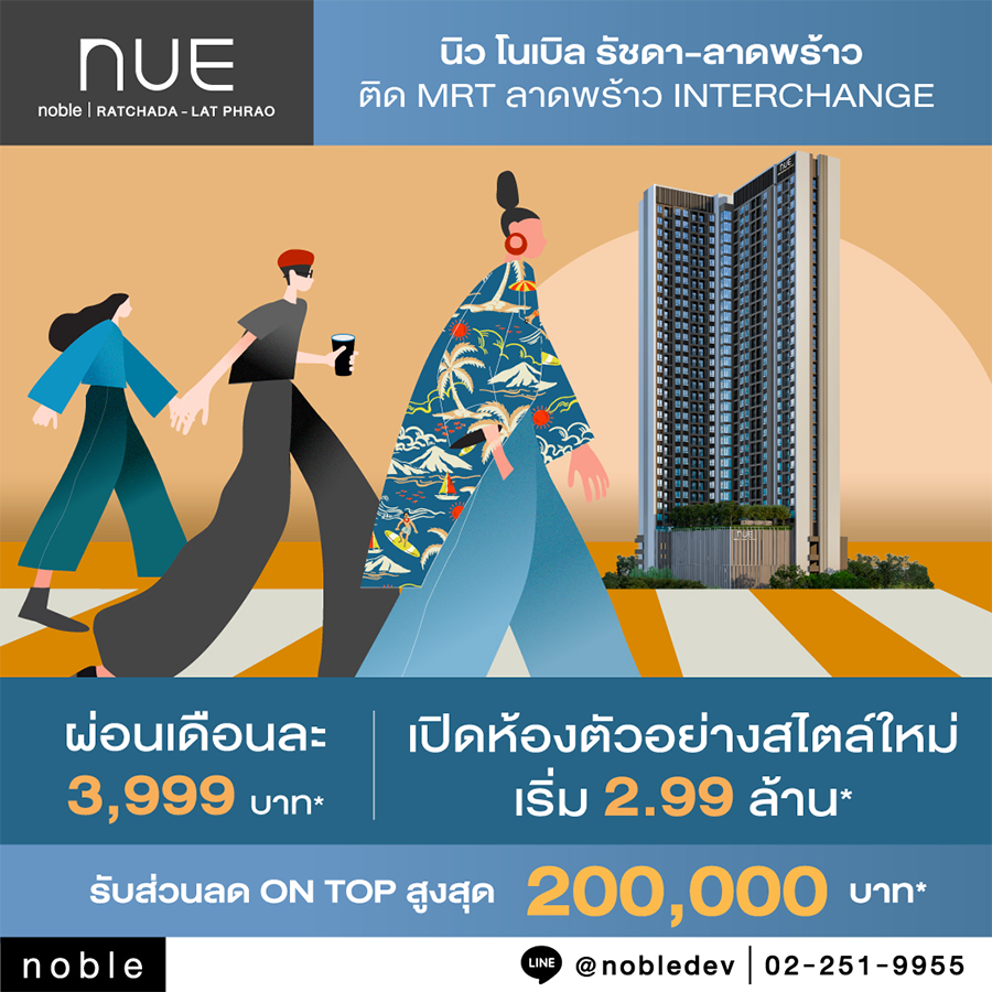 จูงมือกันมาซื้อ "นิว โนเบิล รัชดา-ลาดพร้าว" รับส่วนลด On-Top สูงสุด 200,000 บาท* จำนวนจำกัด ยิ่งจองเยอะ ยิ่งลดเยอะ!