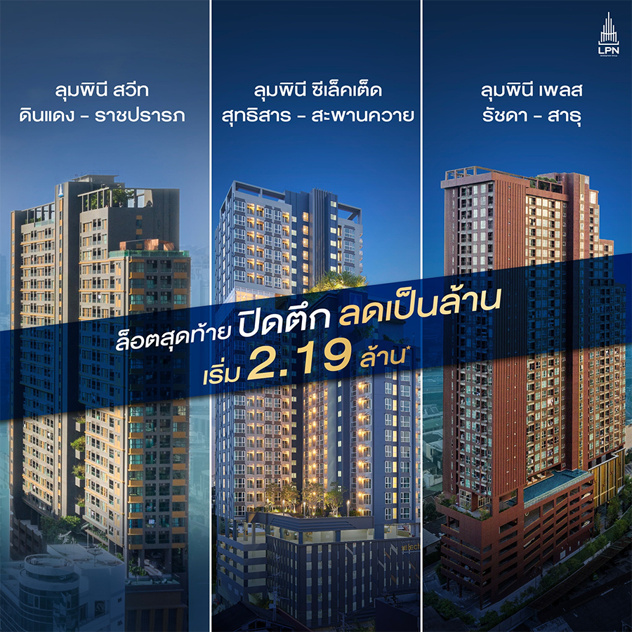 พบกับคอนโดมิเนียม 3 โครงการจาก LPN ที่ลดเป็นล้าน* กับล็อตสุดท้าย แบบพร้อมปิดตึก เริ่ม 2.19 ล้าน*