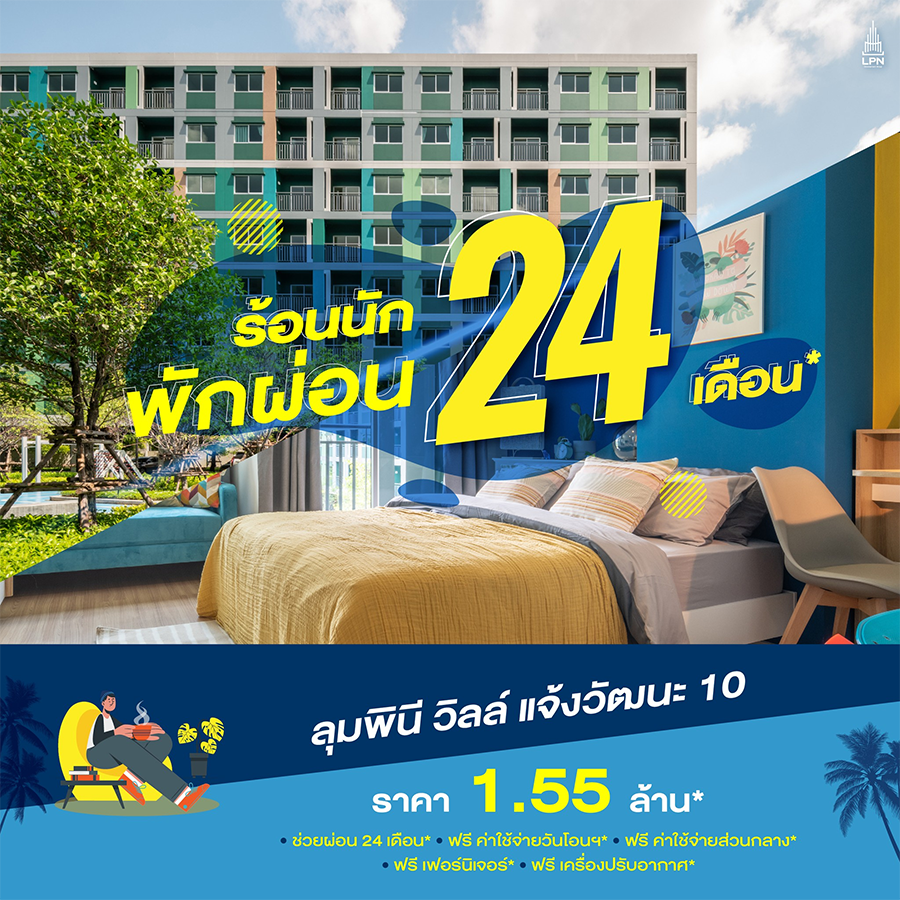ลุมพินี วิลล์ แจ้งวัฒนะ 10 มอบการพักแบบพิเศษให้! กับการพักการผ่อนให้ถึง 24 เดือน* แถมรับสิทธิพิเศษเพียบ! กับแคมเปญ ร้อนนัก พักผ่อน!
