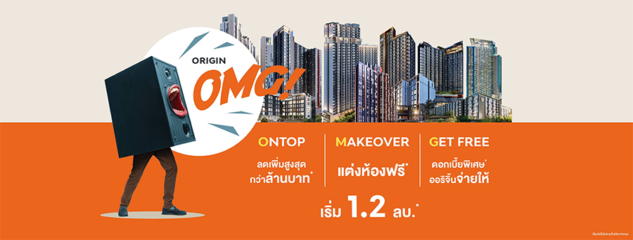 ออริจิ้น พร็อพเพอร์ตี้ ปล่อยดีลโดนๆ ที่คุ้มจนต้องตะโกนว่า OMG กับ ORIGIN OMG ! ดีลดีฟรี 3 ต่อ! (O)n Top| (M)akover | (G)et Free