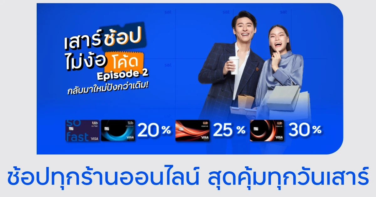 สิทธิพิเศษสำหรับลูกค้าบัตรเครดิตทีทีบี เสาร์ช้อป ไม่ง้อโค้ด ใช้คะแนนแลกรับเครดิตเงินคืนสูง 20% - 30%