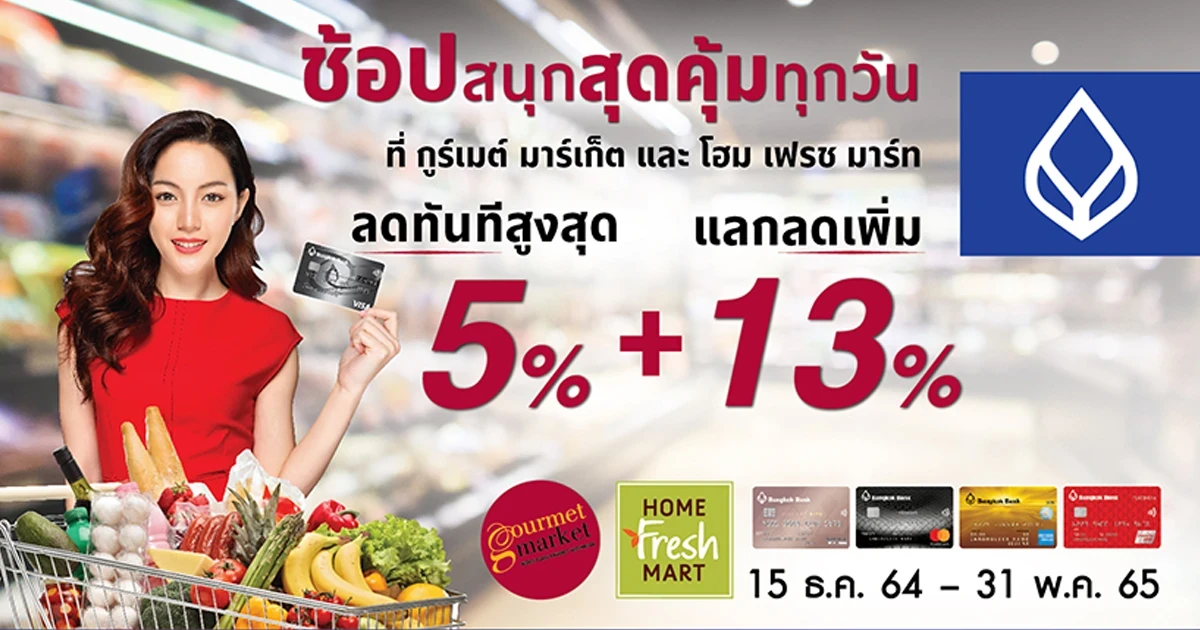 สิทธิพิเศษสำหรับบัตรเครดิตธนาคารกรุงเทพ ที่ กูร์เมต์ มาร์เก็ต และโฮม เฟรช มาร์ท