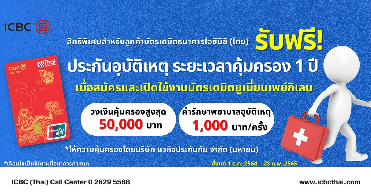 - สงวนสิทธิ์สำหรับลูกค้าที่เปิดบัญชีใหม่และเปิดใช้งานบัตรเดบิตไอซีบีซี (ไทย) ยูเนี่ยนเพย์กิเลนเท่านั้น