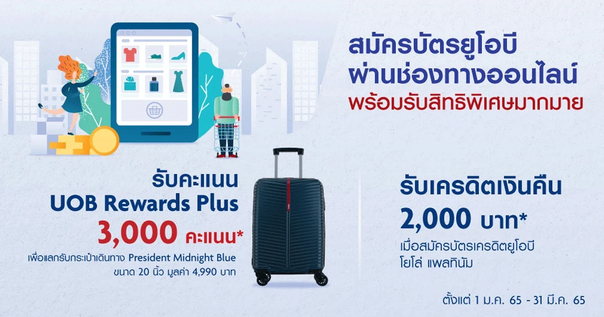 - คะแนนสะสม UOB Reward /กระเป๋าเดินทาง ไม่สามารถแลก/เปลี่ยนเป็นเงินสดหรือโอนให้ผู้อื่นได้