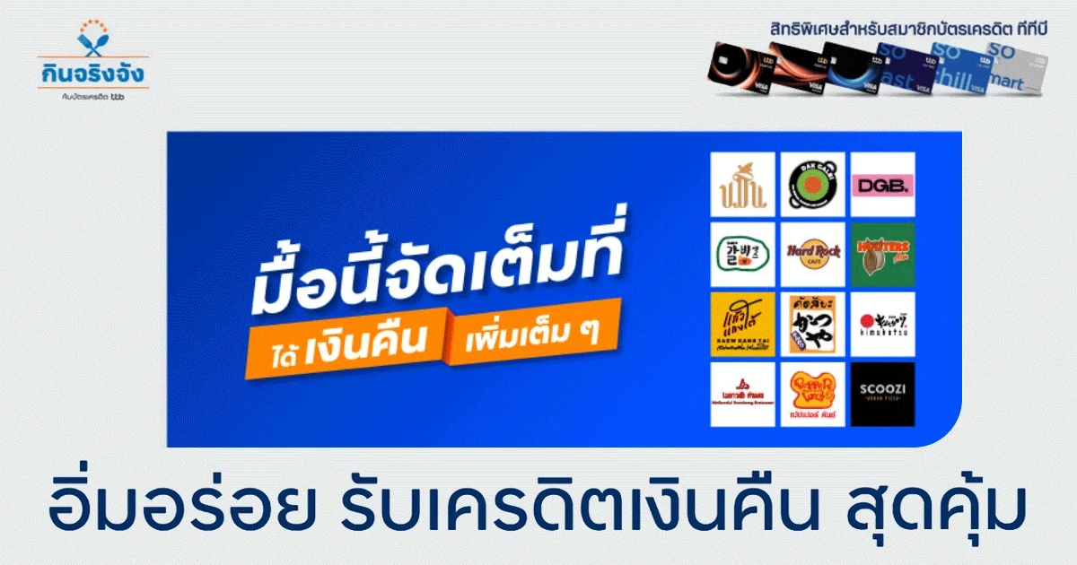สิทธิพิเศษสำหรับลูกค้าบัตรเครดิต ทีทีบี อร่อยครบรส อิ่มคุ้มทุกเมนู มื้อนี้จัดเต็ม รับเครดิตเงินคืนสุดคุ้ม