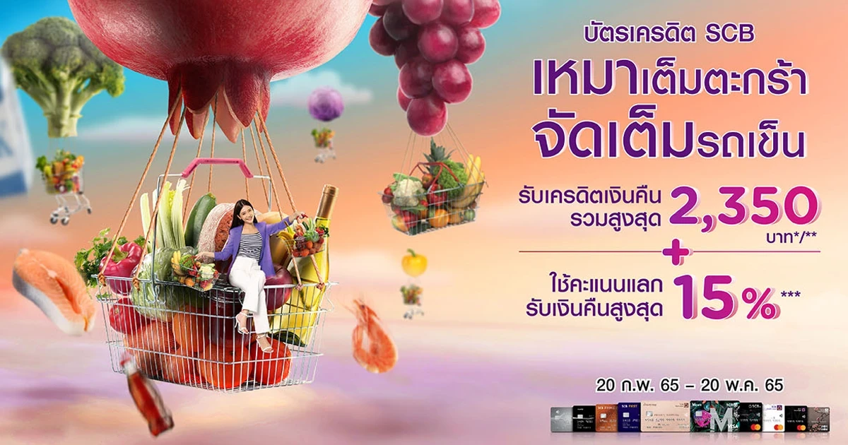 ช้อปซูเปอร์ฯ รับคืนคุ้ม กับบัตรเครดิต SCB ที่ ซูเปอร์มาร์เก็ต ไฮเปอร์มาร์เก็ต และร้านสะดวกซื้อที่ร่วมรายการ