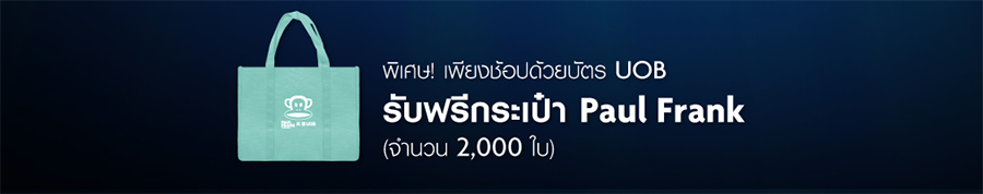 พิเศษ! รับฟรีกระเป๋า Paul Frank รับฟรี กระเป๋า Paul Frank มูลค่า 190 บาท เมื่อแสดงเซลส์สลิป ที่มียอดใช้จ่ายผ่านบัตรเครดิตยูโอบี หรือ บัตรเครดิต TMRW ทุกวันศุกร์ – อาทิตย์ ณ ศูนย์การค้าและห้างสรรพสินค้าเซ็นทรัล เอ็มบาสซี และเซ็นทรัล ชิดลม ในวันเดียวกับที่มารับของรางวัล ที่แผนกลูกค้าสัมพันธ์ (Customer Service) Concierge ชั้น G เซ็นทรัล เอ็มบาสซี และชั้น 7 เซ็นทรัล ชิดลม จำกัด 2,000 สิทธิ์ และ จำกัด 1 สิทธิ์ / ผู้ถือบัตร / ตลอดรายการ