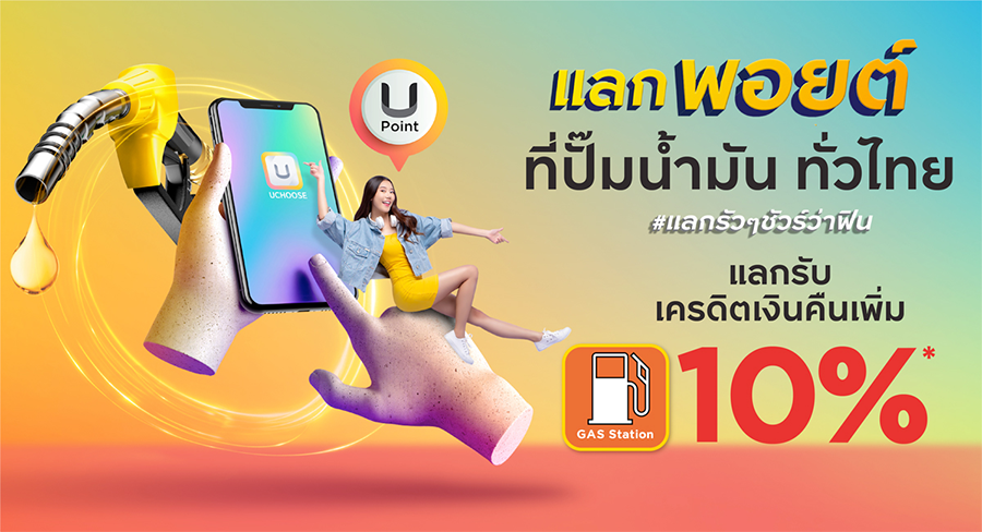 โปรดแลกพอยต์หลังใช้จ่ายภายในเดือนที่ทำรายการ (ฟรีค่าบริการ) ผ่านช่องทางแอปพลิเคชัน UCHOOSE เท่านั้น(โดยพิมพ์คำค้นหาโปรโมชั่นว่า "GAS")