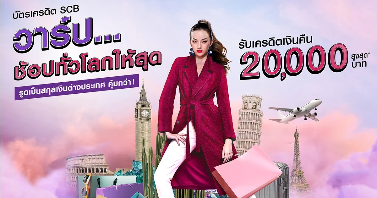 สิทธิพิเศษสำหรับบัตรเครดิตไทยพาณิชย์ ช้อปทั่วโลกให้สุด รูดเป็นสกุลเงินต่างประเทศ คุ้มกว่า! พร้อมรับเครดิตเงินคืนสูงสุด 20,000 บาท*