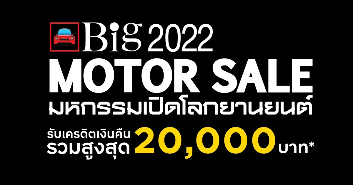 - สงวนสิทธิ์การมอบเครดิตเงินคืนเฉพาะท่านที่ลงทะเบียนแสดงบัตรเครดิต บัตรประชาชน และเซลล์สลิป สำหรับยอดใช้จ่ายสะสมภายใต้ ชื่อเจ้าของบัตรและหมายเลขบัตรเครดิตเดียวกัน ภายในวันเดียวกัน ที่ใช้จ่ายภายในงาน Big Motor Sale 2022