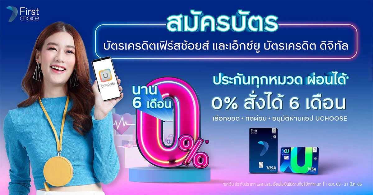 บริการใหม่! อภิสิทธิ์สมาชิกบัตรเครดิตกรุงศรีเฟิร์สช้อยส์ วีซ่า แพลทินัม และ เอ็กซ์ยู บัตรเครดิต ดิจิทัล เปลี่ยนยอดรูดบัตรเป็นยอดผ่อน 0% สั่งได้ 6 เดือน เมื่อรูดซื้อประกัน