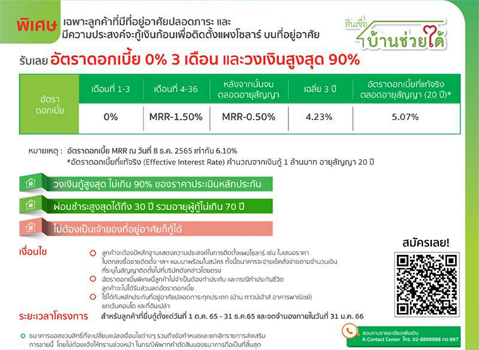 สินเชื่อบ้าน GREEN ZERO : สินเชื่อบ้านเพื่อติดตั้ง SOLAR ROOFTOP ฟรีดอกเบี้ย 0% 3 เดือน