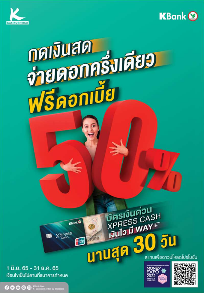 บัตรเงินด่วน Xpress Cash : กดเงินสดจ่ายดอกครึ่งเดียว ฟรีดอกเบี้ย 50% นานสูงสุด 30 วัน
