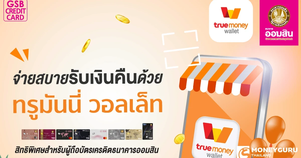 - สิทธิประโยชน์นี้สำหรับผู้ถือบัตรธนาคารออมสินเท่านั้น เมื่อผูกบัตรเครดิตเข้ากับ True Money Wallet และใช้ชำระค่าสินค้าและบริการด้วย True Money Wallet Application ระหว่างวันที่ 1 มกราคม – 30 มิถุนายน 2566