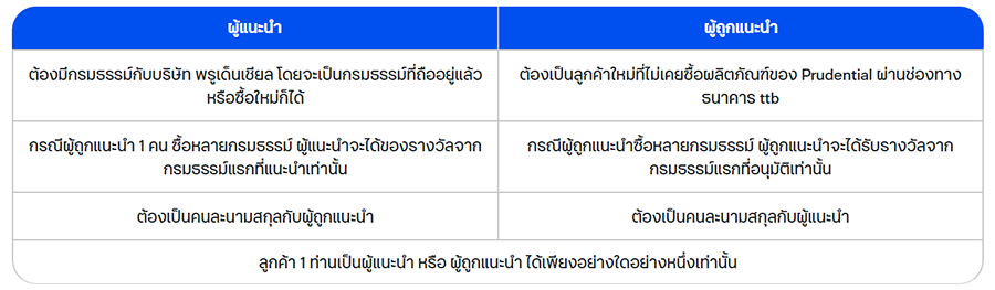 6. พนักงาน ทีทีบี และบริษัทในเครือ, พนักงานบริษัท พรูเด็นเชียล ประกันชีวิต (ประเทศไทย) จำกัด (มหาชน) ไม่สามารถร่วมแคมเปญได้