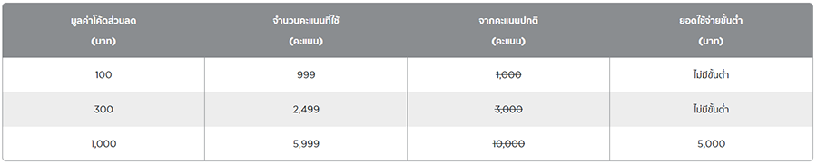 • ไม่จำกัดจำนวนครั้งในการแลกโค้ดส่วนลดต่อสมาชิก