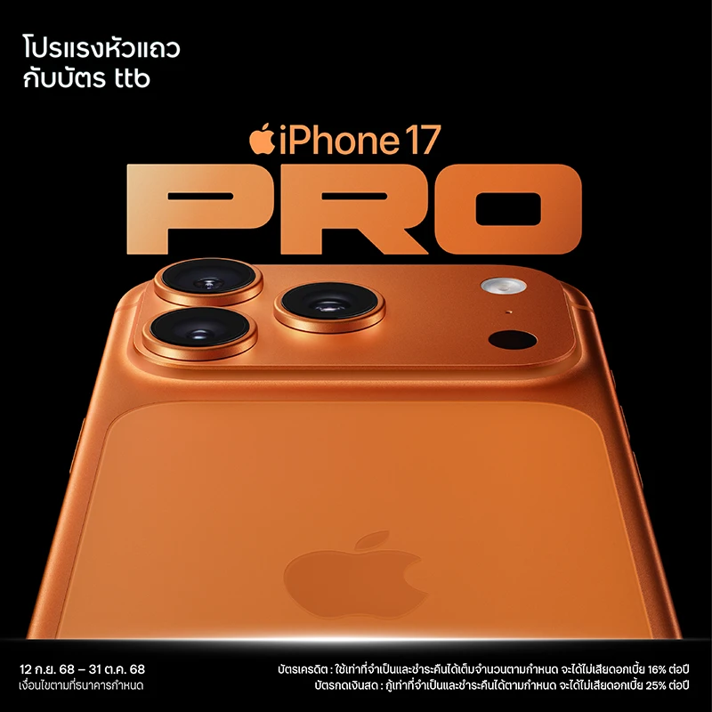 นับได้ว่าโปรโมชันจากบัตร ttb เป็นหนึ่งในตัวเลือกที่น่าสนใจเลยทีเดียว สำหรับผู้ที่อยากเป็นเจ้าของ iPhone 17 ทุกรุ่น