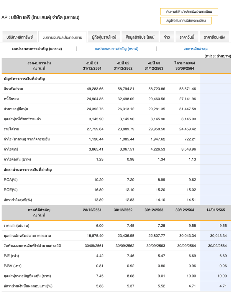 หุ้น AP หรือบริษัท เอพี (ไทยแลนด์) จำกัด (มหาชน)