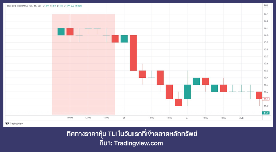 ในทางกลับกัน บริษัท ไทยประกันชีวิต จำกัด (มหาชน) หรือ TLI ซึ่งเข้าซื้อขายในตลาดหลักทรัพย์วันแรก ปิดตลาดที่ราคา 15.9 บาท ต่ำกว่าราคาจองที่ 16 บาท ทำให้หมดโอกาสเข้าดัชนี SET50 ด้วยเกณฑ์ Fast-Track คาดว่าเป็นเพราะอัตราผลตอบแทนพันธบัตรปรับตัวลง สร้างแรงกดดันต่อแนวโน้มผลประกอบการบริษัท