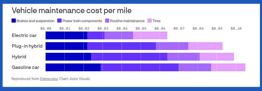 รถยนต์ EV มีชิ้นส่วนหลักเพียงมอเตอร์ไฟฟ้า แบตเตอรี่ และแผงวงจร จำนวนชิ้นส่วนจึงน้อยกว่ารถยนต์ใช้น้ำมัน การดูแล และซ่อมจึงง่ายกว่ามาก