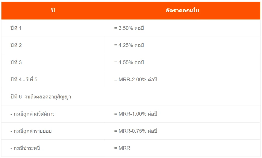 - ปีที่ 6-ตลอดอายุสัญญา : MRR-1.00%