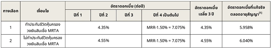 - ค่าเบี้ยประกันชีวิตคุ้มครองสินเชื่อ กรณีเลือกทางเลือกที่พ่วงการทำประกัน MRTA