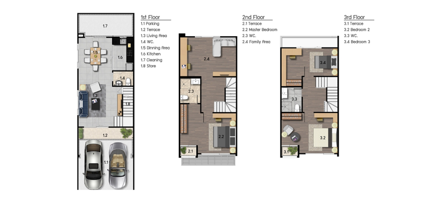 ตัวอย่าง Lay Out ของทาวน์เฮ้าส์ 3 ชั้น