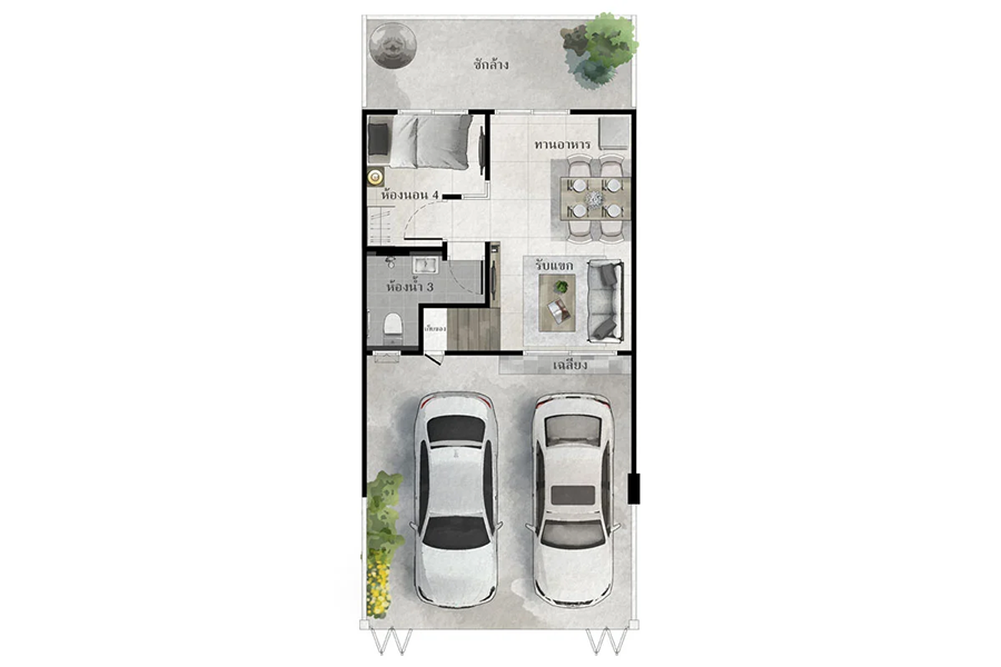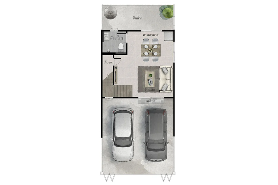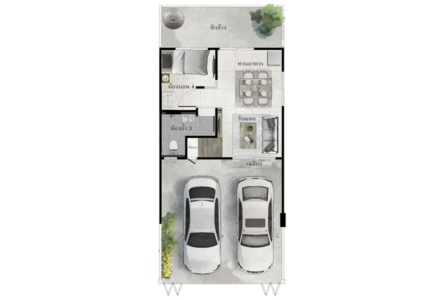2. Mys+ (แสนสบาย) ทาวน์โฮมแปลงมุม S+ พื้นที่ใช้สอย 109 ตร.ม 2 ห้องนอน 2 ห้องน้ำ 1 ห้องรับแขก ห้องรับประทานอาหาร ที่จอดรถ 2 คัน